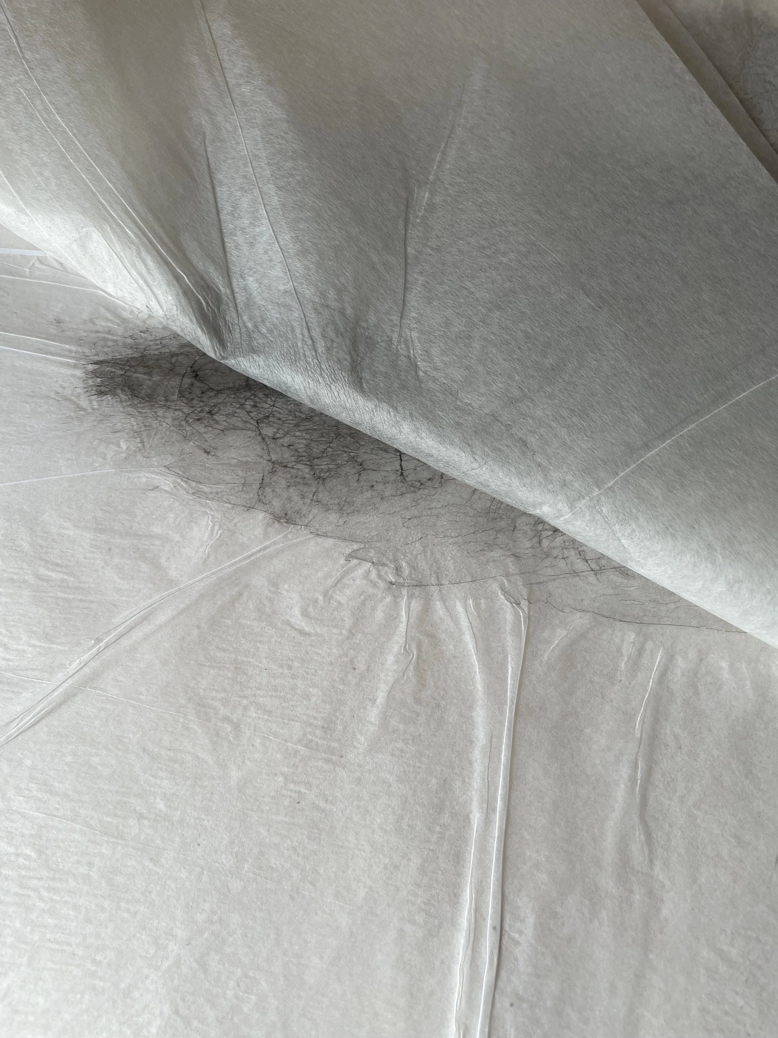 Echo of a Step on Water is a work closely connected to the idea of the impossibility of making a durable sign in determinate circumstances, and it reflects on the concept of the ephemeral in our digital age. Here, I consider water as a medium that carries information, whose action contributes to delineating stratifications and sedimentations, through the process of absorbing and fixing graphite powder between the layers of paper. Metaphorically, water becomes an instrument that allows me to explore the tension between presence and impermanence, in a continuous fluctuation between memory and remembrance. A step on water is a sign and not a sign at the same time. It speaks about a trace, an emotional trace that reactivates the observer’s intimate perception of the flows of memory references, personal and collective, through an emotional echo of the gaze. It is a trace left by memory on a fluid ground.